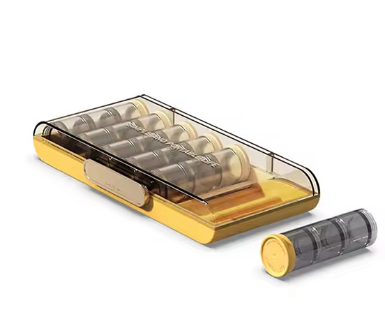 2025 Hot Sale High Quality New Pink Color of Aluminum Material Pull-Out Pill Case Weekly Pill Organizer PPull Out Type 7 Days
